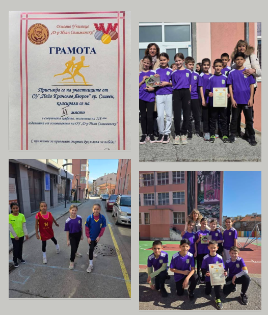 Поздравявления за участниците от СУ "Пейо Яворов" , които се класираха на III място в спортната щафета, организирана от ОУ „Д-р Иван Селимински“ по повод 118-ата годишнина от основаването на училището.